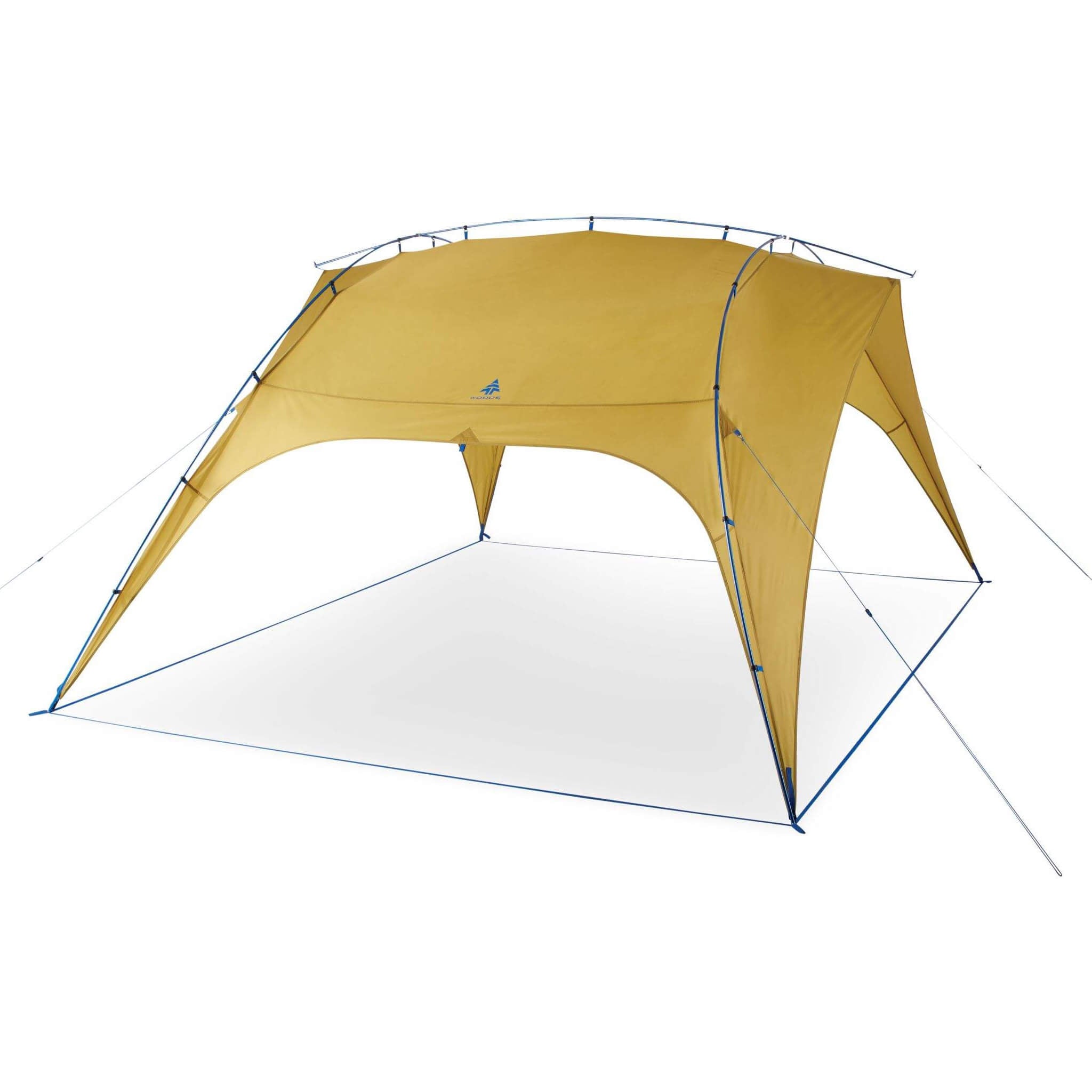 The portable Woods Marquee Canopy Camp Shelter is the perfect lightweight camping shelter. This packable ripstop camping shelter fits up to 6 camp chairs and a small table underneath. With water-resistant durability, aluminum poles and reflective guide lines for stability, this easy-to-store portable canopy provides exceptional protection from sun and rain.